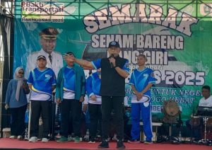 bintangpena.com -Ponorogo- Peringatan Hari Perhubungan Nasional (Harhubnas) 2025, menjadi momen penting untuk terus meningkatkan layanan transportasi prima bagi masyarakat Ponorogo. Hal itu disampaikan Bupati Ponorogo, Sugiri Sancoko disela acara Senam Sehat, Minggu (21/9/2025). “Selamat Hari Perhubungan Nasional, terus tingkatkan pelayanan kita terhadap warga masyarakat. Terus semangat dan selalu jaga sehat,” ungkapnya. Bupati Ponorogo Sugiri Sancoko saat memberikan sambutan pada peringatan Harhubnas 2025, Minggu (21/9/2025) Dalam acara tersebut, Kang Bupati juga berkesempatan memberikan apresiasi terhadap insan transportasi. Seperti juru parkir, sopir angkutan dan lainnya. Melalui apresiasi tersebut, Kang Bupati berharap agar para mitra ini lebih optimal dalam membantu pemerintah untuk mewujudkan kondisi lalu lintas yang baik, tertib, kondusif dan aman. SENAM SEHAT : Bupati Ponorogo Sugiri Sancoko dan Wabup Lisdyarita saat senam bersama, Minggu (21/9). Sebelumnya, dengan mengusung tema “Bakti Transportasi untuk Negeri” Dinas Berhubungan Kabupaten Ponorogo melaksanakan berbagai kegiatan. Seperti Apel Bersama yang dipimpin Sekretaris Daerah Ponorogo, Agus Pramono. Seluruh rangkaian kegiatan, kata Kepala Dinas Perhubungan Ponorogo, Wahyudi bertujuan untuk memperkuat sinergitas, kolaborasi serta peningkatan layanan transportasi yang tertib dan berkualitas di Kabupaten Ponorogo. “Peserta apel ada mitra transportasi kami, seperti para sopir Angkutan Cerdas Sekolah (ACS), dan juru parkir,” imbuhnya. (daz) Post navigation Dorong Percepatan Infrastruktur Daerah, AHY Lari Bersama di Merdeka Run 2025 Monumen Reog Ponorogo Serahkan SK Rekrutmen Tahun 2024, Bupati Minta PPPK Tingkatkan Kompetensi
