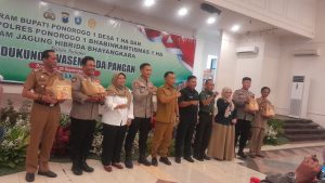 bintangpena.com -Ponorogo- Bupati Ponorogo, Sugiri Sancoko mencanangkan satu desa dua hektare jagung. Program tersebut dilaunching pada Senin (29/9) di Gedung Sasana Praja. Artinya pada musim tanam kali ini, akan ada lahan seluas 614 hektare dari 307 desa kelurahan yang ditanami jagung varietas Bhayangkara.