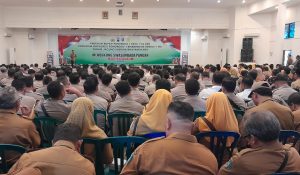 KOMPAK : Ratusan kepala desa dan anggota kepolisian saat mendengarkan arahan Kapolres.